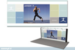 Галогеновые светильники (200 W) обеспечивают идеальную подсветку графики. Magnetic помещается в упаковочный кейс, который может быть обтянут дополнительно графической панелью и использоваться как трибуна или рецепшн.